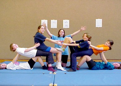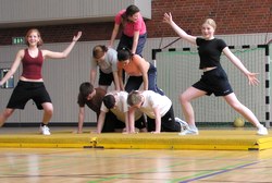 Auf der Basis einer sicheren Bank und des gekonnten Auf- und Absteigens können die Pyramiden immer größer gebaut werden. Dabei spielt die Sicherung (Matten) und die die Partner- und Geräthilfe (evtl. mit Kästen) eine immer größere Rolle.