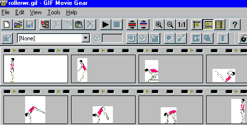 Die Animation kann vertikal oder horizontal als Bildreihe ohne störende Zusätze gespeichert und über ein anderes Bildprogramm oder die Importfunktion in eine Textverarbeitung integriert werden.GIF-Filmstrip