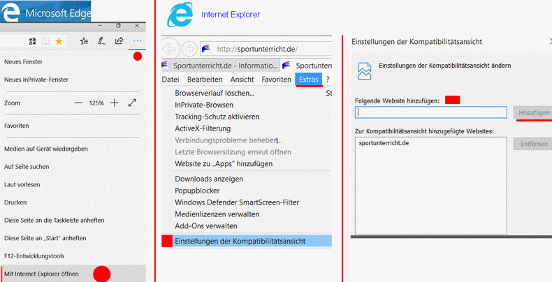 und "Einstellungen der Kompatibiltätsansicht"Es öffnet sich ein neues Fenster