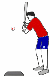 Der Schläger wird fest in beiden Händen gehalten, der Batter steht seitlich zur Schlagrichtung. Mit einer Hüft- und Schulterdrehung werden die Hände und der Schlägerkopf Richtung Ball beschleunigt. Der Ball sollte auf Hüfthöhe geschlagen werden.