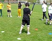 Die Batter sollten seitlich stehen (Schrittstellung mit Bewegung zum Ball).