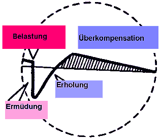 Mit der Überkompensation betreibt der Organismus also eine Art "Vorratswirtschaft" , indem er sich auf ein höheres Leistungsniveau entwickelt, von dem aus zukünftige Belastungen ökonomischer zu bewältigen sind.