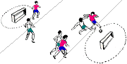 Zuspiel auf die gegenüberliegende Seite und dort wieder hinten anstellen usw.