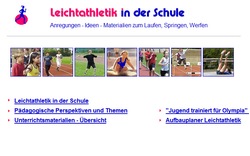 Praxistipp Leichtathletik in der Schule (Webseite Rolf Dober) Leichtathletik-Themen (mobilesport.ch.) Laufen, Springen Werfen (mobilesport.ch) Handbuch - Leichtathletik in der Schule Leichtathletik-Animationen Spielleichtathletik Leichtathletik.de/Methodik Spiele in der LA Aufbauplaner Leichtathletik Kinderzehnkampf Dreisprung Hürdenlauf im SpU Hochsprung im SpU Sportstunde Dreisprung Materialien Lauf, Sprung Wurf Sport-Schüler-Script Methodik-Techniktraining (leichtathletik.de) Wurfspiele Laufen und Werfen - Bithatlonstaffeln Stundenentwürfe - 4teachers Sprungschulung mit Reifen Sprungvielfalt Puzzlelauf, Puzzlestaffeln In zehn Schritten zum Stab(hoch)springen Thema Schnelligkeit (Mobile) Spiel: Läufer gegen Werfer Lehrmittel Sporterziehung (Schweiz) Leichtathletik-Tests Weitsprung UE Ausdauer Unterrichtsentwürfe Ausdauertraining mit Schülern (Spielformen) Von der Rhythmusfähigkeit zum Weitsprung Deutscher Leichtathletikverband Internationaler Leichtathletikverb. zurück Übersicht | Unterrichtsmaterialien