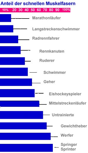 Die Verteilung der einzelnen Muskelfasertypen scheint genetisch festgelegt zu sein (Sprintertyp/Ausdauertyp).