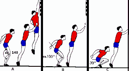 Jeder Schüler führt pro Sprungart drei Sprünge durch.