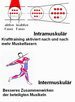 Nerv-Muskel-Zusammenspiel eines einzelnen Muskels innerhalb eines gezielten Bewegungsablaufs.Gekennzeichnet durch das Wechselspiel von Nervensystem und Skelettmuskulatur in bezug auf Einsatz und Beanspruchungsgröße der motorischen Einheiten.