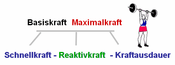 Reaktivkraft ist die Fähigkeit, bei Dehnungs-Verkürzungszyklen der Muskulatur einen hohen Kraftstoß zu erzeugen. (Kombination von ![]() |
