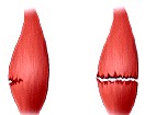 Diese beiden Verletzungsformen unterscheiden sich lediglich quantitativ, d. h. in der Anzahl der gerissenen Muskelfasern voneinander. Typisch für diese Verletzung ist der plötzlich einschießende Schmerz, der von dem Betroffenen als Peitschenhieb, Stockschlag oder Messerstich charakterisiert wird. Meistens ist im gerissenen Muskel an der Rissstelle eine Delle zu tasten, begleitet von einer Schwellung ober- und unterhalb des Muskelbauches.