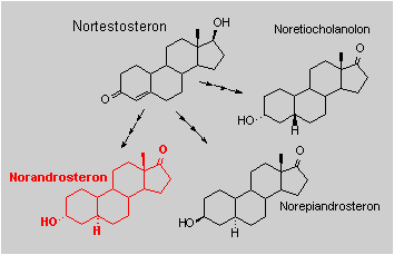 Abb.4 Stoffwechsel (Metabolismus) von Nortestosteron (Nandrolon) mit dem Hauptmetaoliten Norandrosteron