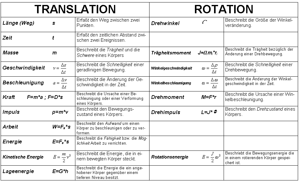 Translatorische und rotatorische Elemente in physikalischen Begriffen