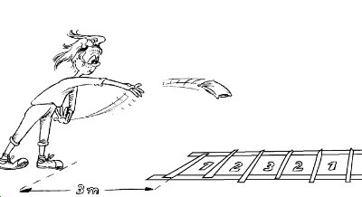 möglichst in den mittleren Zwischenraum werfen. Es werden fünf
