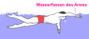 - Ziehe den Unterwasserarm kräftig nach hinten (Richtung Bauchnabel und drücke ihn dann zum Oberschenkel)