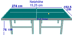 ....... .. . . Tischtennisplatte Die Oberfläche des Tisches, die ”Spielfläche”, ist rechteckig, 2,74 m lang und 1,525 m breit. Sie ist 76 cm vom Boden entfernt.