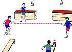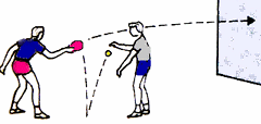 - Partner stehen sich gegenüber - TT-Ball (mehrmals) auf dem Boden springen lassen - dann mit dem Schläger zuspielen (auch über Hindernisse/Schnur)