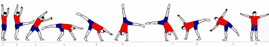 2 - 4 Turnende - Aufgabe: möglichst synchron das Rad turnen