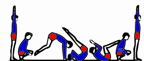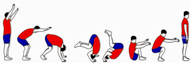 - Beine angehockt, evtl. zwischenzeitig gestreckt