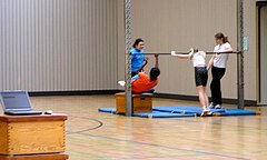 Bei dieser Übung sollte zunächst mit Hilfe- bzw. Sicherheitsstellung geturnt werden.